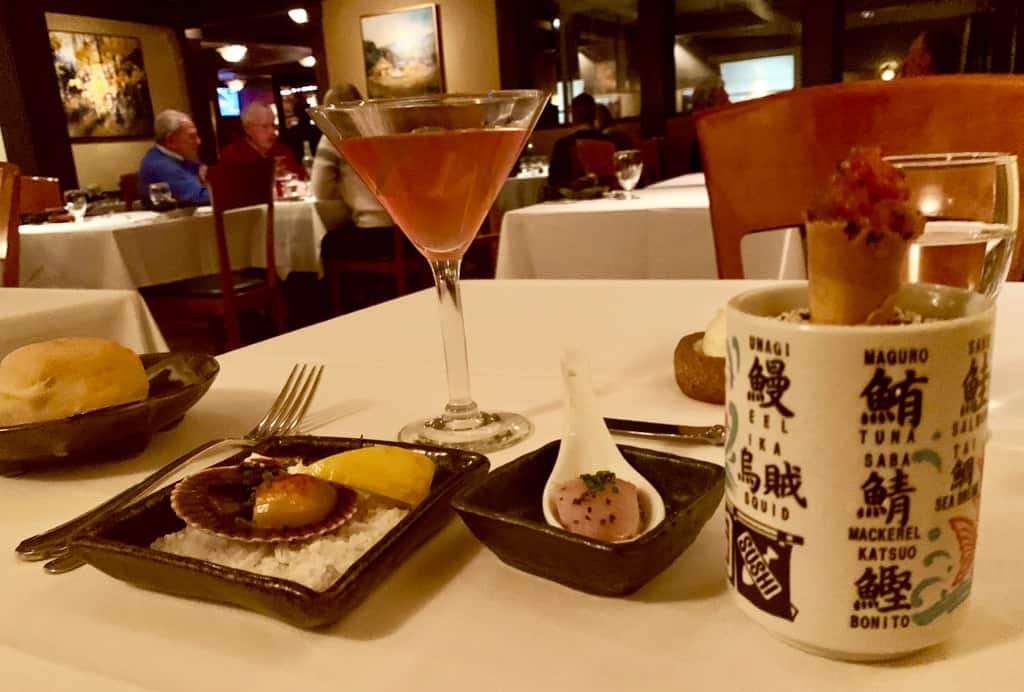 The Master Chef Douglas Dale worked as a ceramic artist before becoming a professional chef who was trained in Japan (which must be why he sent out a few Asian delights dishes before I ate my main meal!). Chef Douglas Dale thinks about all aspects of the guest’s experience in fine dining, even down to the plates that he designed in partnership with a ceramicist in Ohio. He has thought of everything over the years!