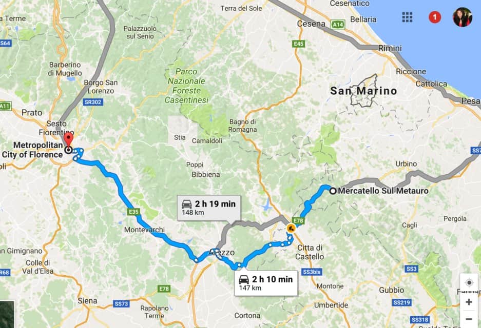 He ended up at the Castelo del la Pieve, a castle perched on the territory between Le Marche, Tuscany, and Umbria. It is located in the countryside about three kilometers from Mercatello Sul Metauro, which is where we are headed.