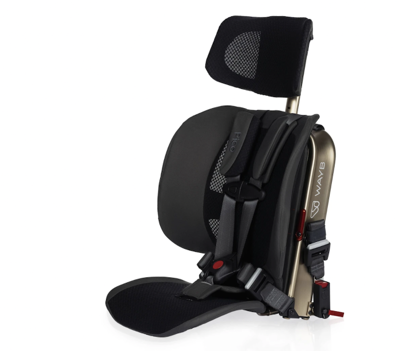 The Pico travel seat comes with a latch system and a five-point harness. The latch system allows it to be strapped into the airline seat using a seat belt. It weighs only 8 lbs plus it is foldable too. You can place it in its carrying sack or attach it to your luggage.