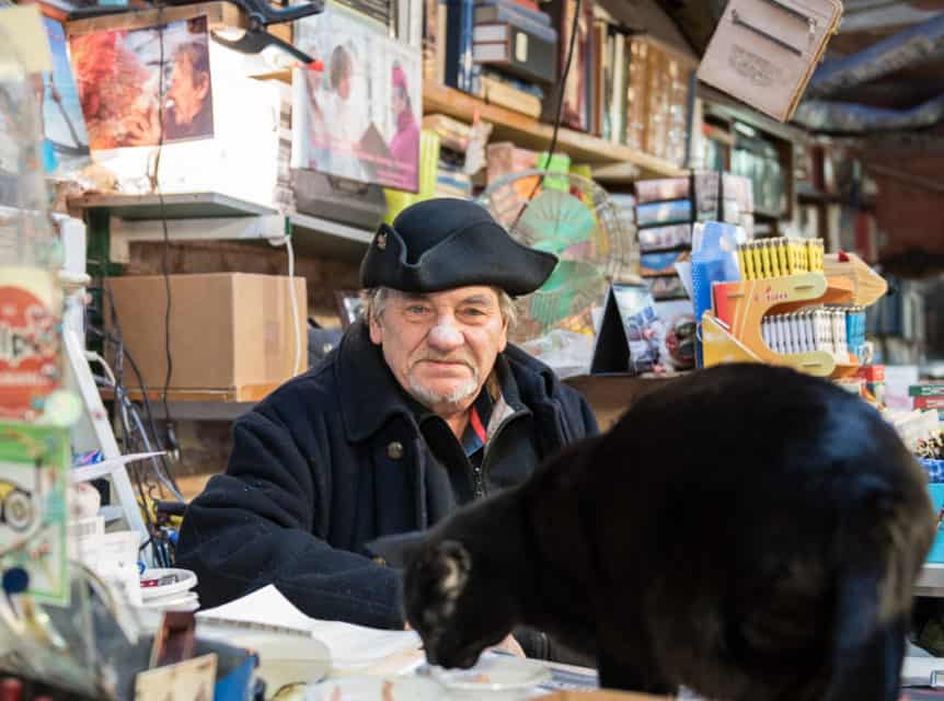 Sitting front and center was an old gondola spilling over with books and somewhere in all this dusty, musty scenario was the proprietor, sitting behind a cluttered counter with his trusty cat. A small terrace out back had a staircase made out of books where you could climb up peek over the stone wall into the canal. Libreria Acqua Alta is more than a bookstore, it’s truly an attraction.