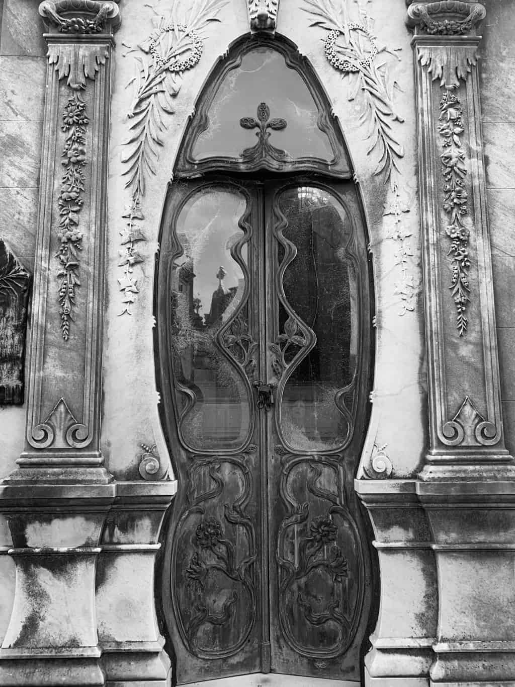 Built and founded in 1732 by the Franciscan monks of Our Lady of Pilar, this cemetery became the first public cemetery in Buenos Aires in 1822 (on my birthday, no less!). At first, you might be a little hesitant to visit this “city” of the dead, but let me advise you, it is worth exploring. Walking down each “street” or turn lets you see magnificent architecture from the late 1800s to the early 1940s. All the mausoleums are primarily made from materials that were imported in the late 1800s from Italy and France. The details of each crypt are very interesting and can be anything from marble, glass, doors, sculptures, wrought iron gates, windows, crosses, and even symbols from other religions other than Christianity! Some even have rooms, where family members have a key and can sit inside the crypts. Others have locks and chains on them.