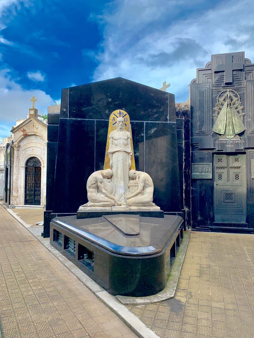 The only colorful burial site in this cemetery is that of this Admiral. He was the founder of the Argentine Navy. Sea carvings and melted bronze from ships were used to build his mausoleum! To honor his Irish roots, the outside of his tomb was painted green.