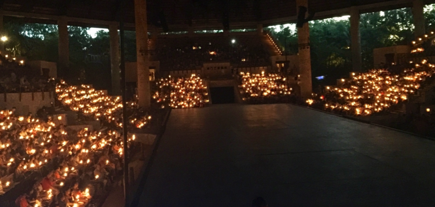 Seated in a massive outdoor auditorium known as the Gran Tiachco Theater, I squinted to see what was on my plate, as I could smell the flavors and aromas of Mexico. All I had to do was open my menu since it was one of those glow-in-the-dark menus, so I could read what’s for dinner!