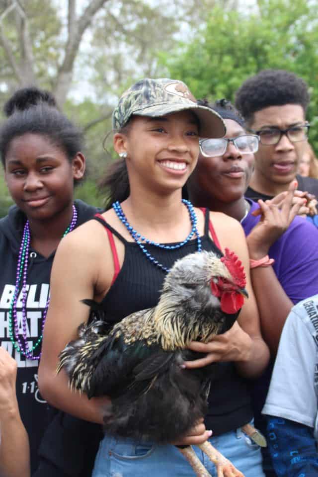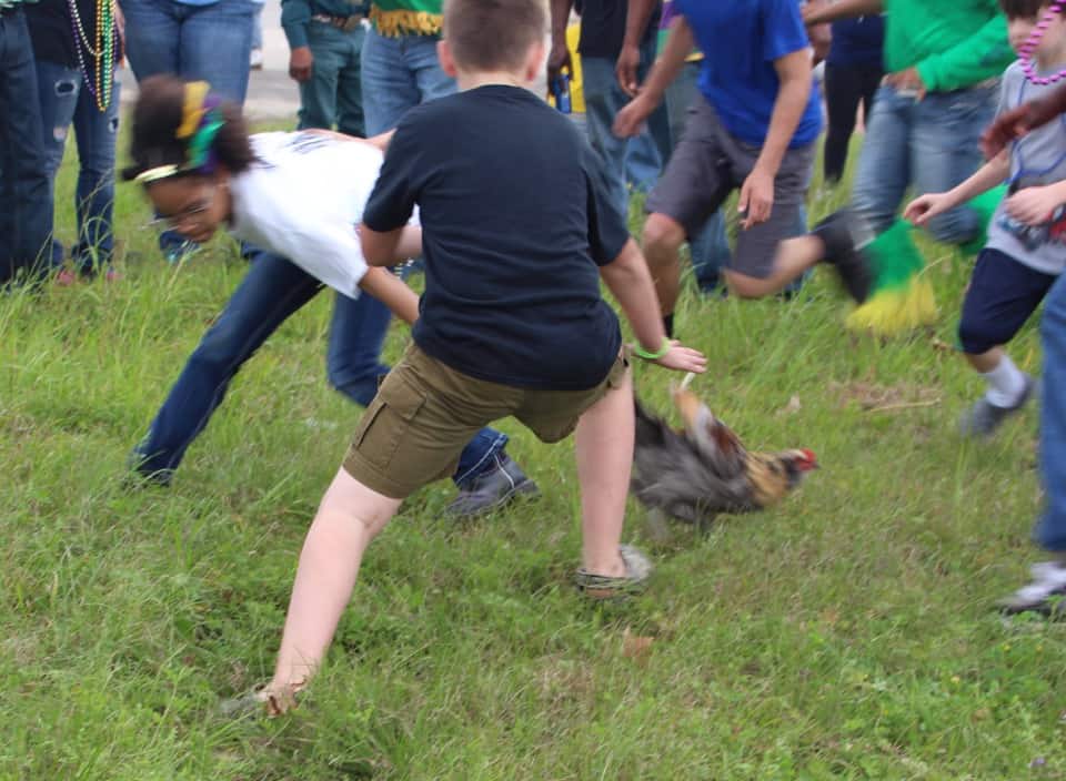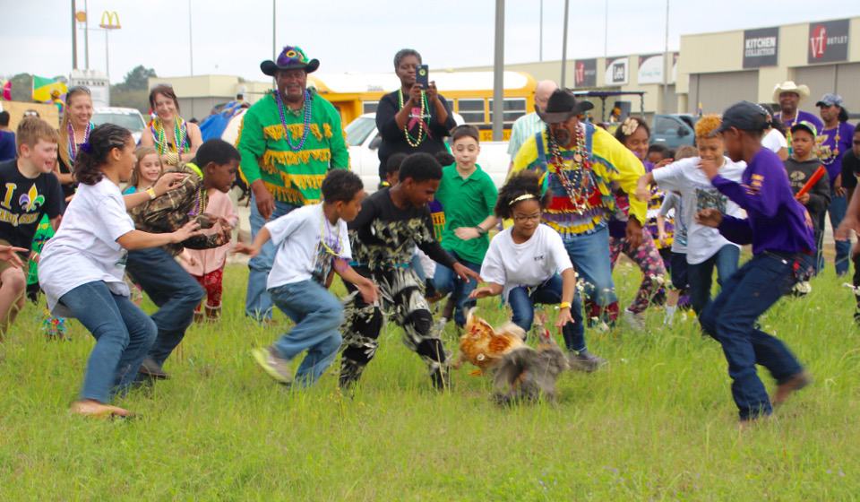 Iowa Chicken Run – This was the 38th annual Iowa Chicken run and follows a route along Highway 90 in Iowa, LA. The doors open at 8 am at the Knights of Columbus Hall, the floats start the line up at 9 am and then parade route starts at 10 am, finishing around 1 pm, just in time for some… you guessed it! Gumbo and a zydeco dance! This is practically a day long even that runs like a community parade. You can pay a small fee to be on one of the floats as it winds its way through the community. At each stop, Rodney will get the chickens out, talk to the homeowner, dance to the zydeco music, then hang the chicken upside down and let it go in the yard full of kids.