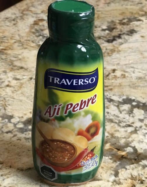 While North Americans love their ketchup, mustard, and mayonnaise, Chileans love to eat Pebre or Aji Pebre sauce as their condiment. This condiment can be put on almost anything and it is made to be put on vegetables, meat, and seafood. The photo below is one that you typically can buy in the grocery stores in Chile (like Jumbo), but my mother-in-law makes her own fresh, and man oh man, it is good!