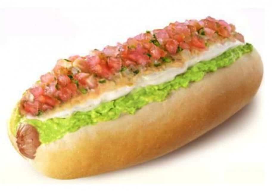 One of the more beloved “hot dog” sandwiches is called the completo Italiano (or at least this one is my favorite). This sandwich includes bread, tomatoes, mashed avocado, mayonnaise. The red, green, and white of the main ingredients resemble the colors of the Italian flag, hence the name of the sandwich.