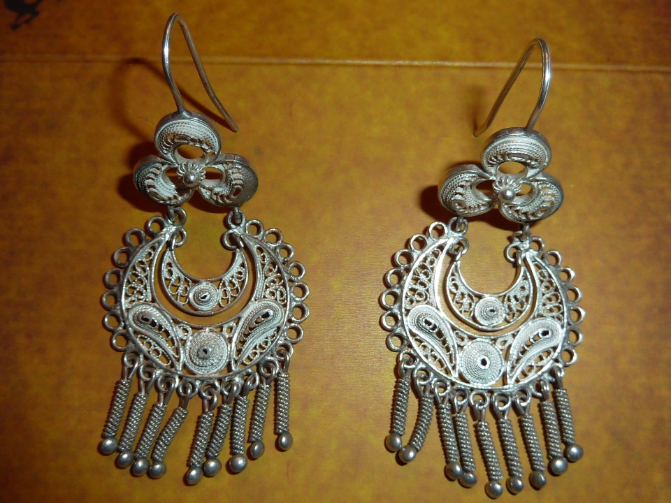 The above photo is an example of sterling silver filigree earring that is traditional in Chordeleg. The craftsmen feed silver into a rolling mill, where it becomes flattened, into the shape of a wire. By hand, they continue to work with this wire until it becomes a thin strand. Then they twist the silver and dust it with silver powder. Eventually, they meld it together with a soldering torch. All pieces are made by hand and according to the difficulty of the design and the weight of the silver, they are priced. The pair above I got for $20 USD.