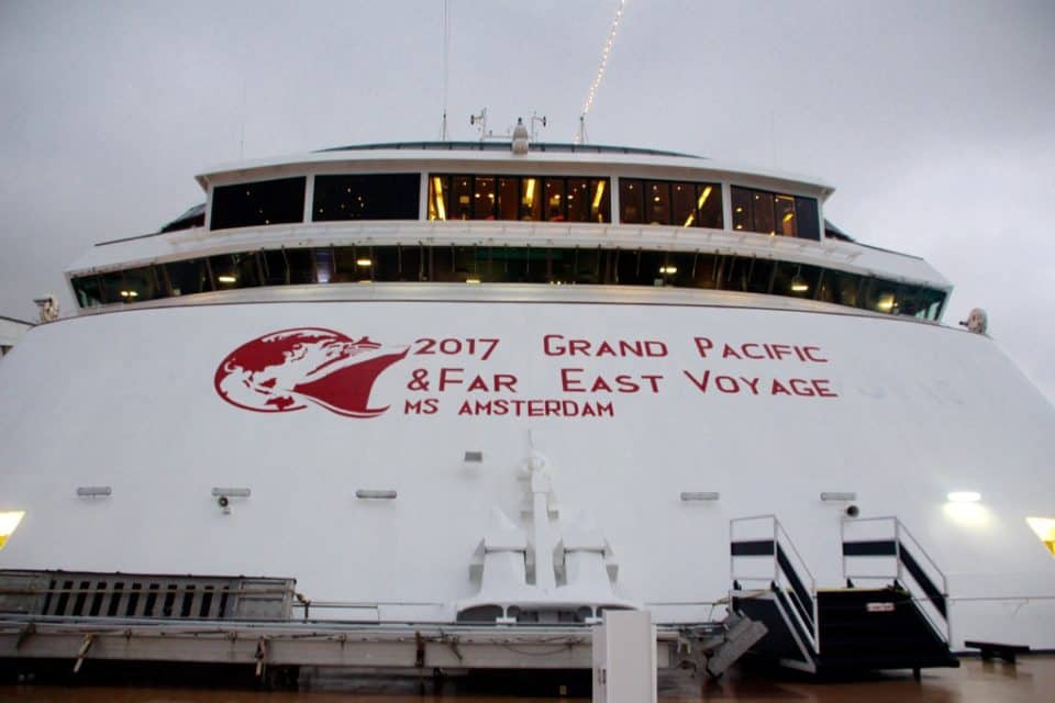 During the summer, the MS Amsterdam sails around Alaska; during the winter, the ship makes global cruises around Asia, Australia, New Zealand, and the South Pacific. She also sails an around-the-world doing the grand voyages from Fort Lauderdale, Florida, and from San Diego, California. I joined the global cruise that was already in progress in Hong Kong.