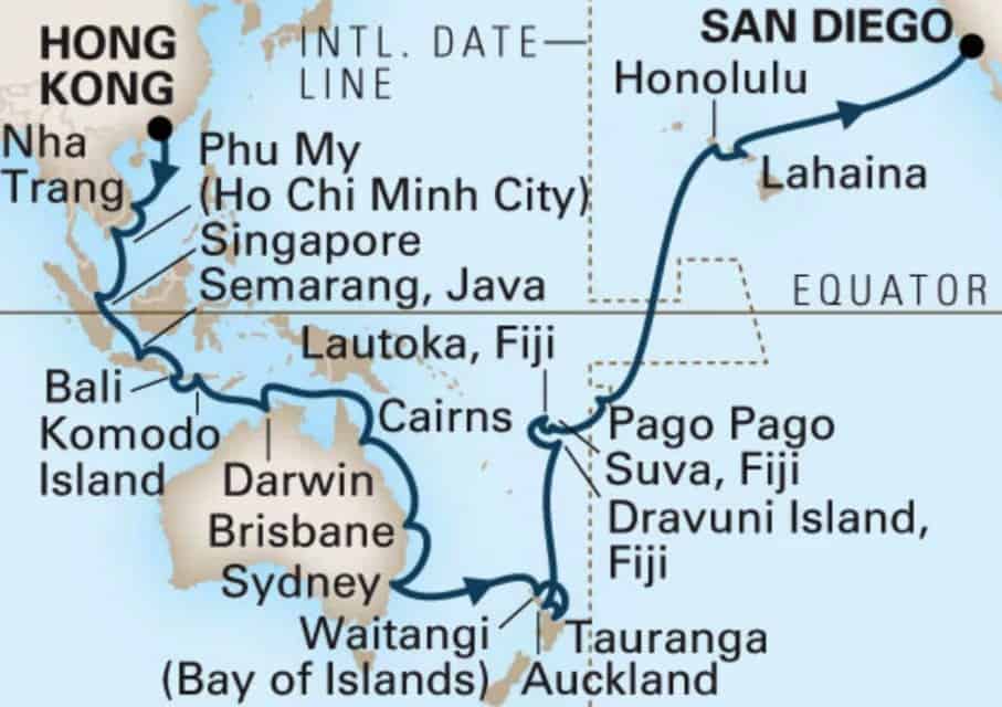 Here is a list of upcoming Grand VoyagesCome cruise Holland America on a global cruise, Hong Kong View from deck with swimming pool