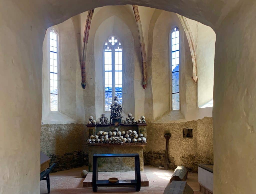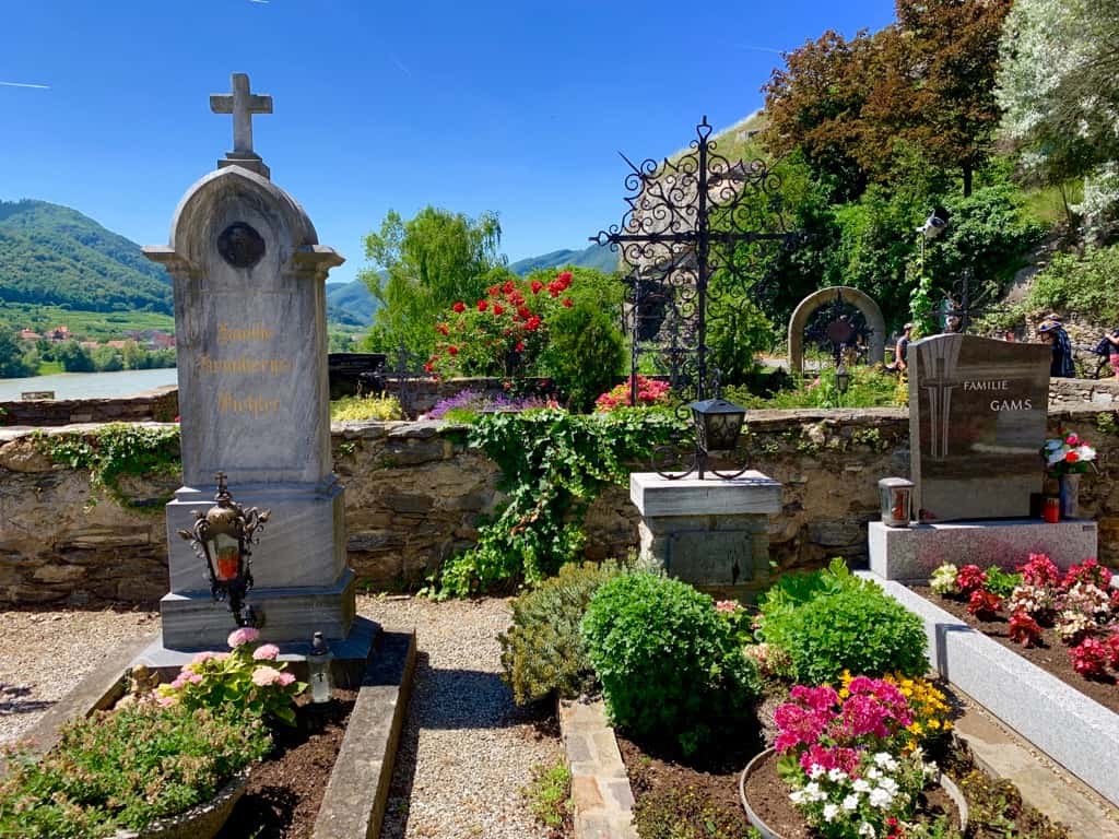 I also enjoyed the glorious 10th century Saint Michael’s church stop in Weißenkirchen. If you have read my blog very often, you know how much I love to visit cemeteries. And this church had a gorgeous one just outside the main doors. It lies in a picturesque setting with a nice view of the Danube River from the church cemetery. This Church also has an underground ossuary where a collection of skulls and bones are kept.