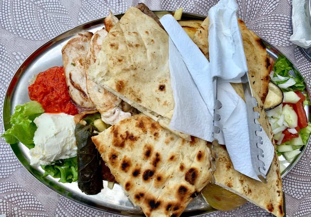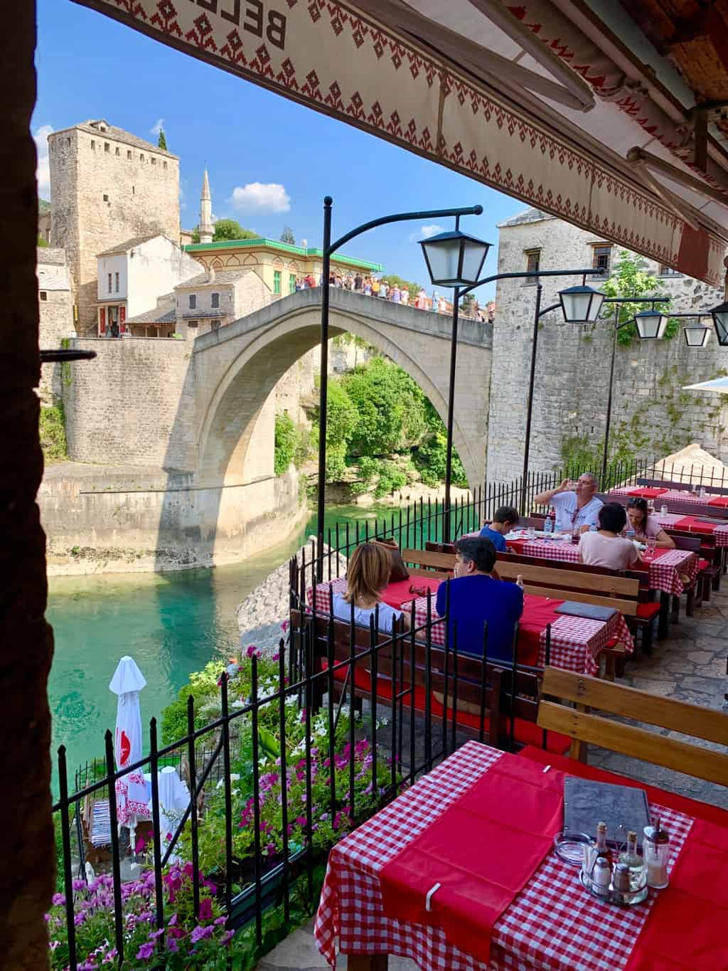 You cannot spend a whole day in Mostar without eating – and this was our first time trying Bosnian food! So if you are in the mood for traditional Bosnian food, then you should try Lagero for the best Bosnian cuisine with an awesome view from the owner Allen’s terrace! You will feel like you are sitting in the Neretva River! Look no farther than Lagero for amazing Bosnian cuisine in Mostar. Plus, conversation with the owner makes it even more special as he delights in bringing you his specialty of the day and discussing the politics of Bosnia! He serves an extensive list of wines, meats, and cheeses as well. We loved the traditional Cevapi, which is a Balkan minced meat kabob served with onions, paprika flakes, and somun bread that they make here.