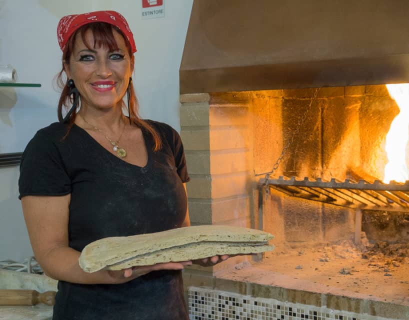 As we approached Non Solo Testo, Susan was singing the praises of Angela, the proprietor, for her flatbread (torta al testo) cooked on an open fire, then stuffed with local meats, cheeses, and vegetables. Her healthy-sized sandwiches were paired with a taste of Perugia’s original craft beer.