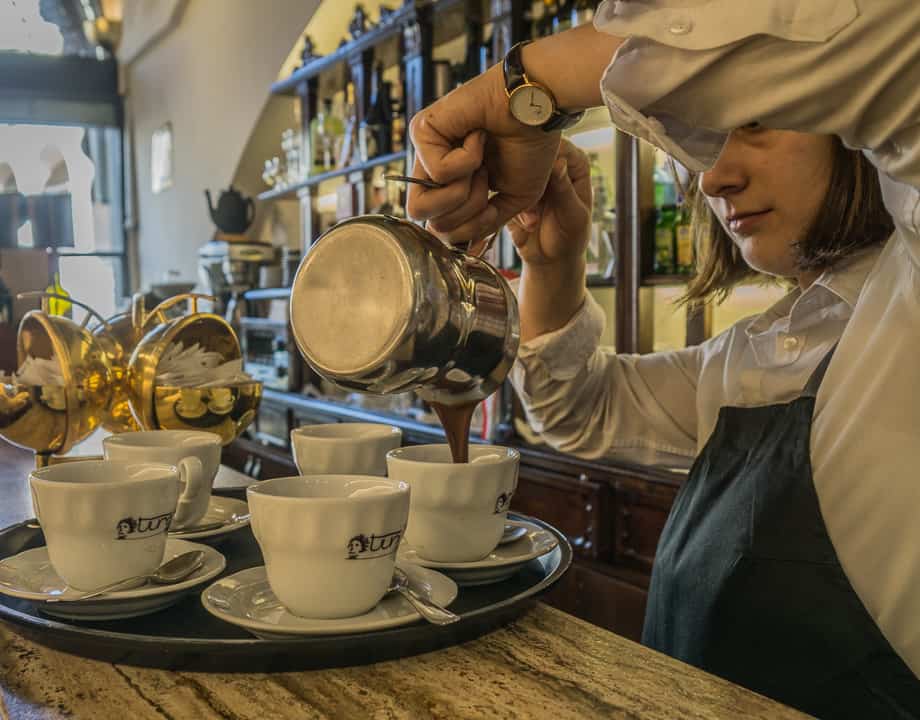 We started at Turan Café in Perugia’s Piazza Novembre, the main square of this fascinating city. A choice of cappuccino or tea was offered, along with ham and cheese croissants, as well as a chocolate variety. Turan Café is also a chocolatier, with a production room in the back where you can watch the action. On a warm day, Turan’s outside tables are the ideal place to sip a coffee, grab a pastry, and get absorbed in people watching.