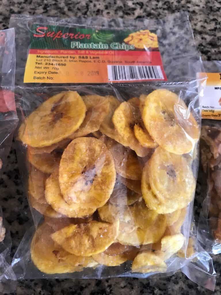Plantain Chips are fried, thinly-sliced plantains that are salted.