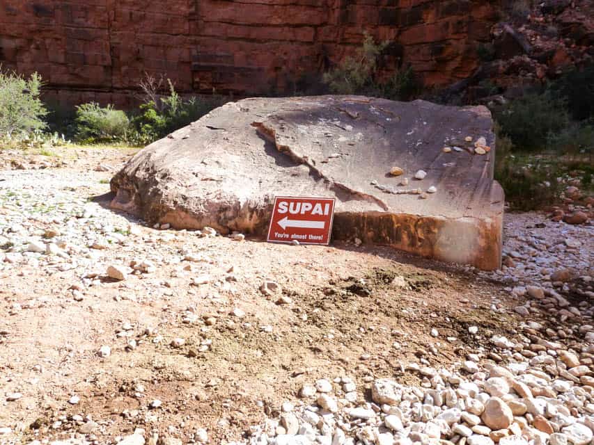 This 15-minute ride will take you directly to the village of Supai and costs around $85. However, they only operate between 10 am and 1 pm on Mondays, Thursdays, Fridays, and Sundays. If you prefer to walk but not with a bag, the helicopter service does offer to fly bags to Supai where you can pick them up before hiking the next 2 miles to the campground.