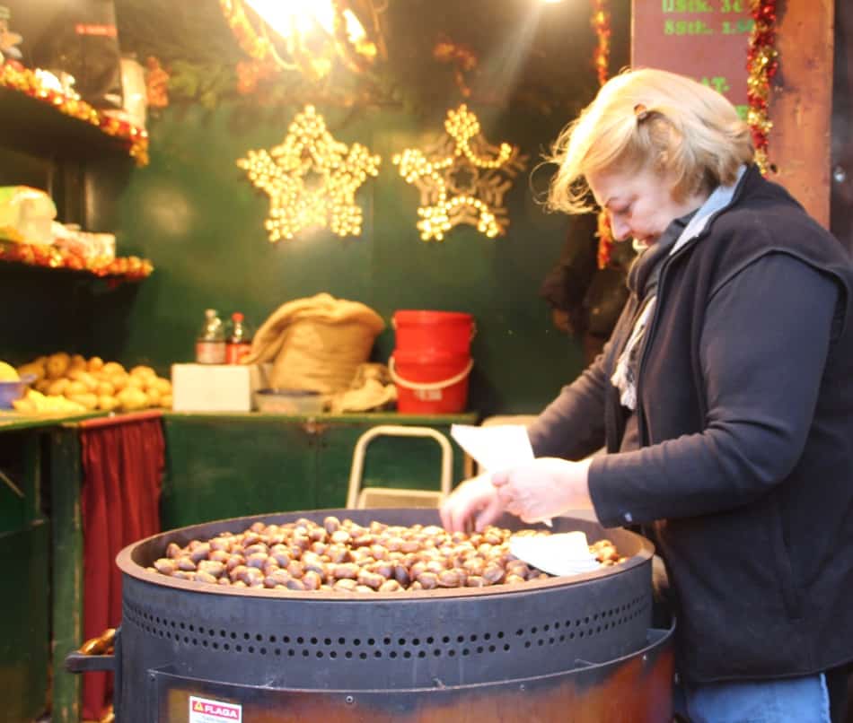 The stalls also offer traditional sausages and goulash. One fantastic food we did try was the traditional chimney bread. It is a dough that they wrap around a hot steel rod and cooks it over hot coals as they slowly turn it. Once you choose it, they pull it out of the fire, roll it in either cinnamon or chocolate sprinkles and then wrap it up for you to eat. They are originally from Transylvania and known as the kürtöskalács – Hungarian yeast cakes.