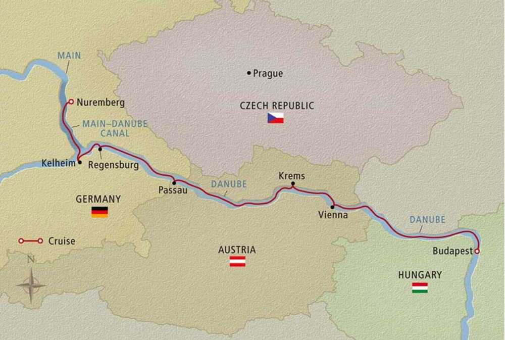 I floated from Nuremberg to Budapest, in three countries: Germany, Austria, and then to Hungary!