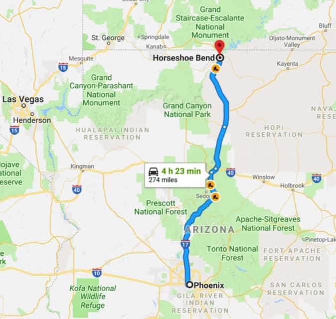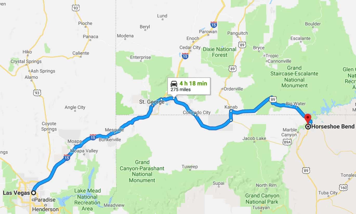 The closest major cities to Horseshoe Bend are Phoenix and Las Vegas. For those who choose to visit this extraordinary site from Phoenix, you will have some distance to cover. Arizona’s capital is almost 280 miles away from Horseshoe Bend and it can take roughly 4 1/2 hours to arrive at this destination. You can rent a car from Phoenix and then drive to Page, AZ from there. It is also about an equal distance from Las Vegas, so that could be another option in getting to Horseshoe Bend. The drive time between Las Vegas and Page is also about 4 1/2 hours.