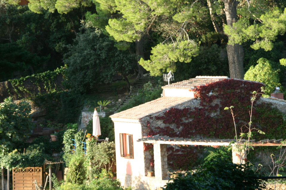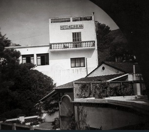 Its mere beginnings are a romance story within itself. Young Clara Capellà,“la Clareta”was the daughter of a hostal owner that sat beach front overshadowed by a wealthy Barcelona family home up above. The nephew of the wealthy family fell in love with Clarita, which resulted in the opening of the Hotel Aigublava in 1940. It is now a fairly large hotel with several homes jumbled together around flowered terraces and pine trees. Here you can see an old photo from 1934 showing the two residences.