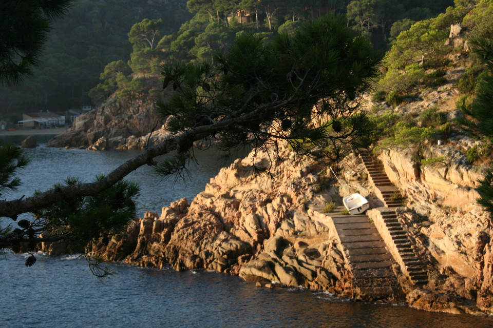 Aiguablava is a small indention of a bay on the Costa Brava Coast in Catalonia, Spain. It rests quietly along the Mediterranean Sea with miles and miles of Spanish coastline. As I sit out on my balcony, staring at the beauty and charm of the Bay, I am struck by the simplicity of it all. It has an old world charm about it that is romantic as I stare out at the crystal blue sea. And as I sit silently, I am transformed back in time to an old fishermen’s village, with row boats and dinghies lining the beach and forgetting about the rest of the world.
