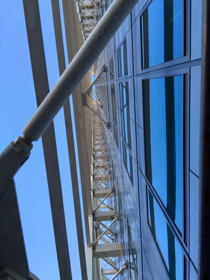 I walked around the property shooting from as many different angles as I could. The glistening gold metal would peer through my lens and make each shot better than the last. So what is that thing? Some call it ‘the whale’, the actual name is Peix in Catalan, by Frank Gehry. It is an art installation that was put on the boardwalk, and can be seen from several different angles, but for me, the views from the pool and the back of the Hotel Arts Barcelona are absolutely stunning! I couldn’t take my eyes off the thing! I even laid down in the wrought iron rocking chaises on the green lawn grass under the palms, day-dreaming about how blessed I am to have made it to this very spot in my life.