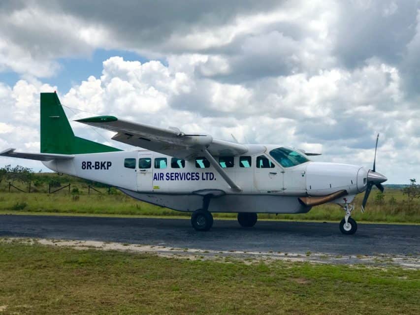 Kaieteur International Airport services just two airlines so it is essential you plan your charter flight with them specifically. These airlines are Trans Guyana Airways and Roraima Airways which, from Kaieteur Falls, fly to the Georgetown destinations to Eugene F. Correira International Airport (OGL) and Cheddi Jagan International Airport (GEO), respectively. As large commercial flights to Kaieteur Falls is unheard of, it is important that you fly with a small group if only to split the cost of a charter flight. Otherwise, it can be wind up being very expensive to fly out to the Falls on your own. Here I have put together a general list of flights as well as their duration when flying between Georgetown and one of the country’s main airstrips: