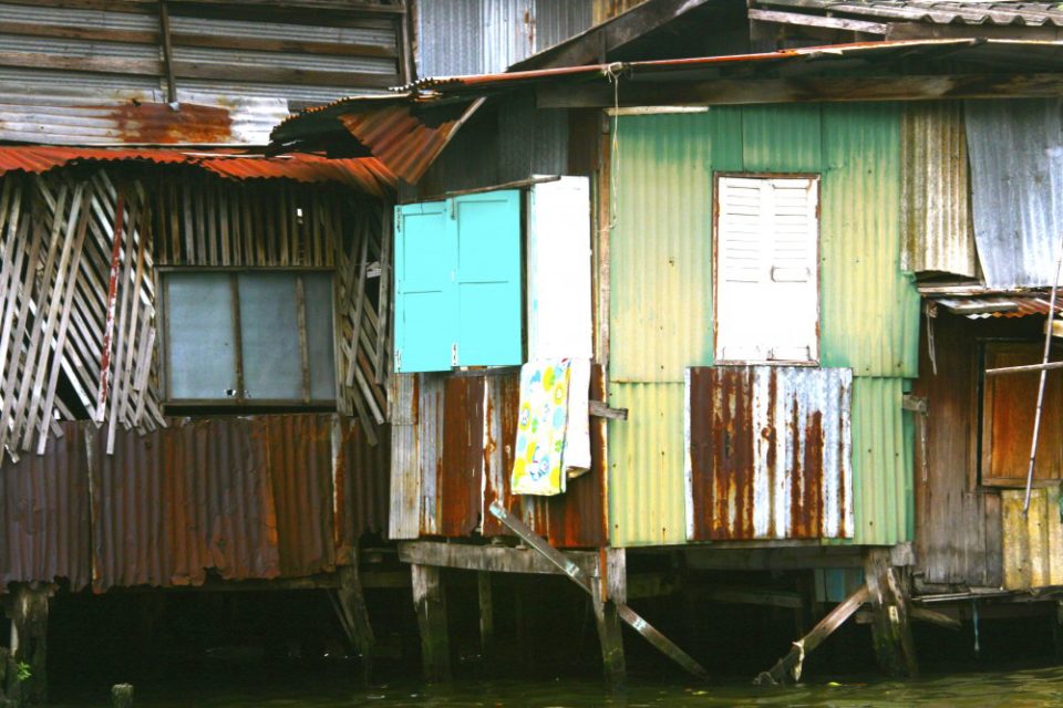 My eyes wide, not quite sure which side of the boat I should sit, as the photo opportunities were immense. It takes me a while to get into the rhythm of the visual stimulation coming at me. I see reflections of colorful tin buildings in the water, not knowing whether to take the photo of the reflection or the actual shack as it waves at me in the water.