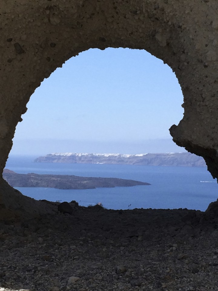 I had arrived on Santorini island, rented a car, and was on a whirlwind tour with my beautiful, blonde tour- guide friend, when she mentioned she wanted to show me this hole in the rock caldera overlooking the coast, that she had deemed “Lover’s Cove”. She told me her own version of how she had found this place.