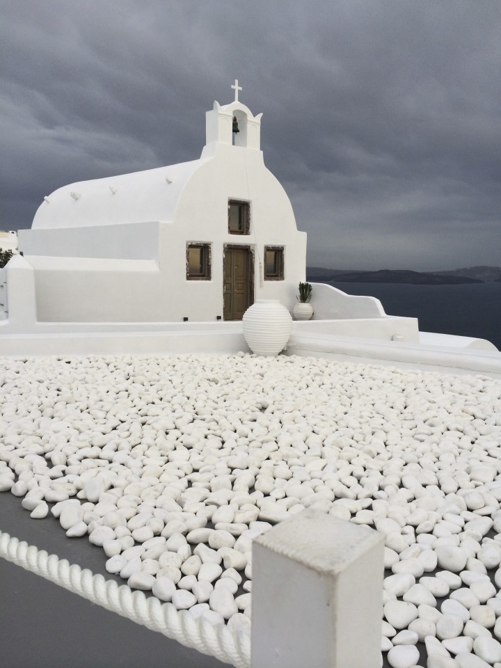 Here I was at the awe-inspiring Caldera Santorini on the largest island in a circular archipelago in the Greek Isles. They were literally the remnants of an island that was destroyed by a volcanic eruption. Which brings me back to that rock that I held firmly in my hand, along with the vacuum cleaner hose in the other. I held on to it tight, wanting to literally grasp every single memory I could get out of this little piece of volcanic ash and see those glistening sun rays hit that water.