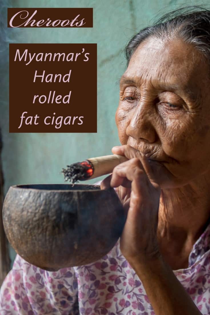 Cheroots, Myanmar’s hand-rolled fat cigars, are sometimes rolled with dried banana, tamarind, or pineapple for flavoring.  It’s common in the villages to see older women puffing away at these big stinky sticks to which I say, to each his own.