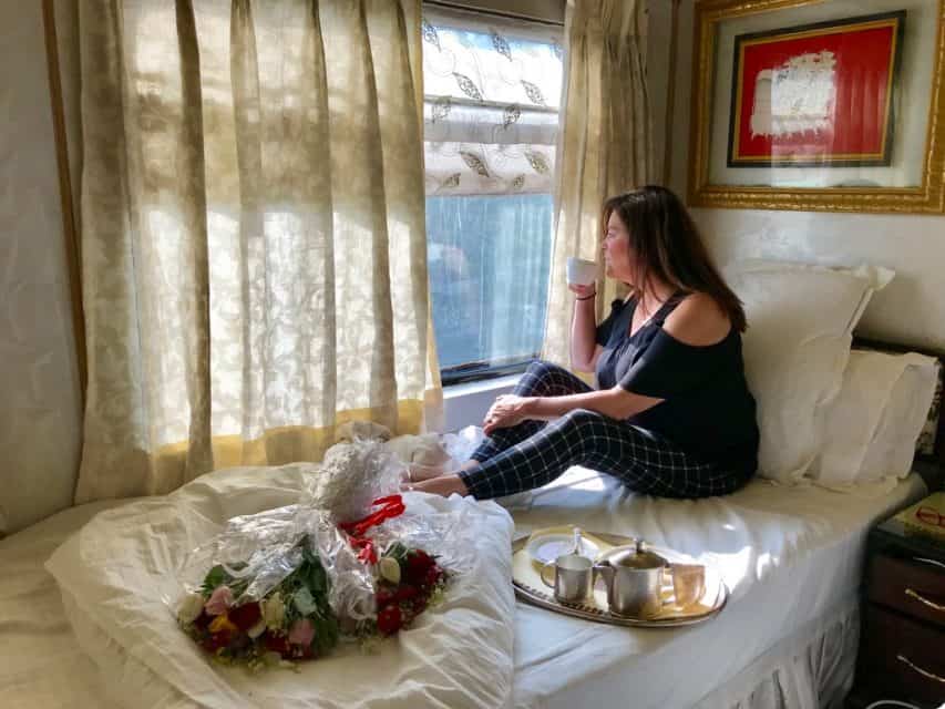 This includes wake-up calls, tidying up the room, turndown service, and ensuring that the guests in their assigned cabin were able to wake up in time for their tours. The wake-up call will also come with a cup of tea or freshly brewed coffee delivered into your cabin if you would like.