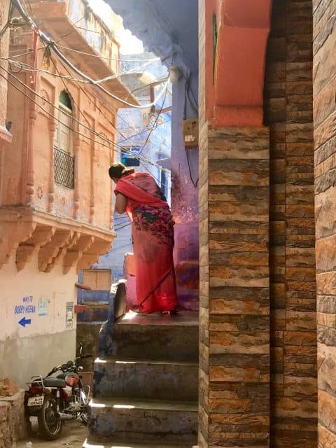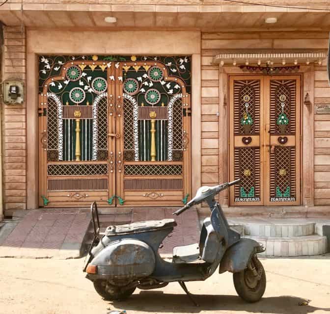 • Famously known as the Blue City, Jodhpur is the next stop on your Rajasthan Tour aboard the Palace on Wheels. Photography enthusiasts will love this city, especially the stunning blue city views from the top of the Mehrangarh Fort. A 16th-century fort, the Mehrangarh Fort is one of the tourist places in North India that’s known for its beautiful Rajasthani architecture. There’s a turban tying lesson where guests can take part in, before heading to the Jaswant Thada, a cluster of magnificent white-marble cenotaphs. As a group, we decided to cut our tour a bit short and headed out on a tuk-tuk to go down inside the blue city.