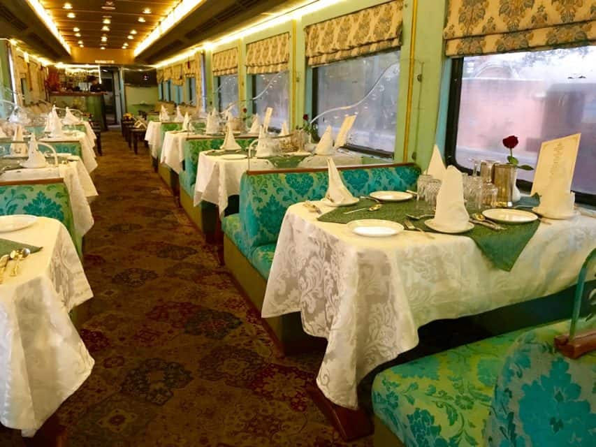 The never-ending food at the Palace on Wheels train starts from breakfast until dinner with set meal times. The menu features a wide range of dishes, from Indian to Western and Chinese delicacies. If you’re allergic to something or have any food restrictions, inform them when booking your ticket and they would be glad to prepare separate meals for you.