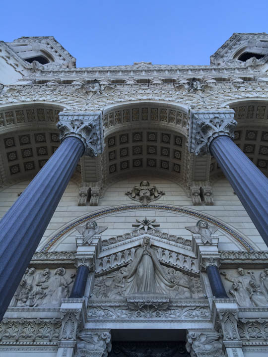 You can also ride up to the top of Fourviere Hill on the funicular railway and enjoy sweeping views of Vieux Lyon down below, scoping out the two river systems. The gorgeous and majestic Basilica of Notre-Dame de Fourvière is there with its giant lion statue, the symbol of the city.