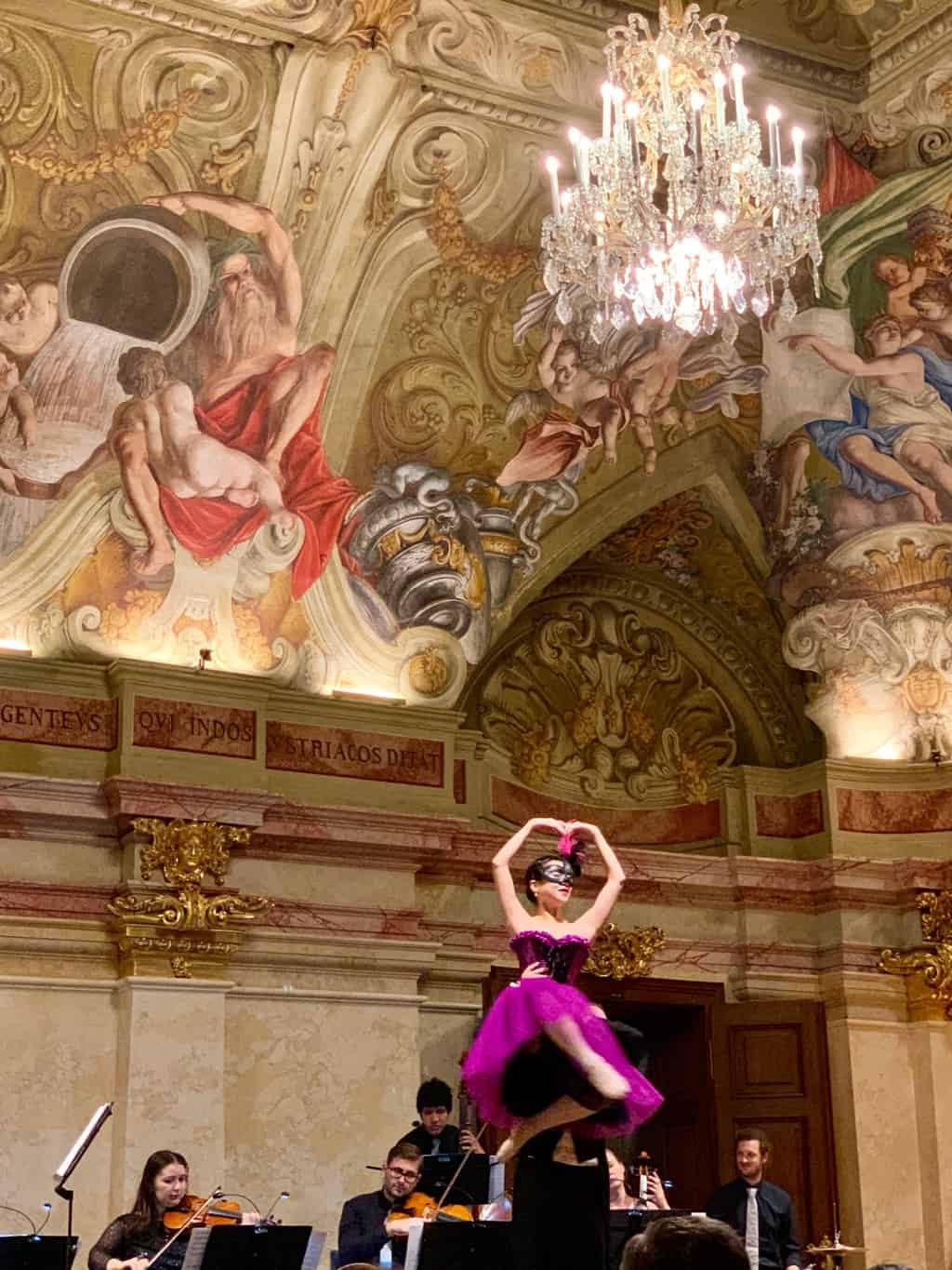 My nighttime “Discovery” excursion was a classical music concert. As you know, Vienna is the home of many famous musicians and is known as the city of music, so of course, I had to attend. Vienna is the perfect place to attend a concert filled with music from Beethoven, Mozart, Strauss, and many other amazing talents. The concert was performed by the talented Vienna Supreme Concerts and performed in the Palais Niederösterreich in Parliament Hall. This concert hall was stunning and took my breath away when I saw it! The sounds of the singers and classical music were outstanding and I enjoyed every minute of it!