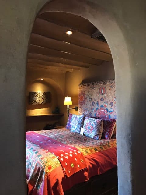 • Inn of the Five Graces – ranked by the U.S. News as one of the best hotels in the USA for 2018, the Inn of the Five Graces is a stunning Santa Fe hotel near the plaza with well-appointed rooms showcasing Tibetan and East Indian furnishings. These Santa Fe suites are cozy, comfortable, and bursting with colors that you will feel like you have been transported to an Arabian fairytale. Visually, this place will WOW your socks off. I enjoyed my stay in a one-bedroom suite overlooking the spa area.