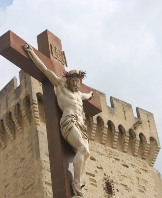 Christ crucificiton cross near Palais des Papes, Avignon, France