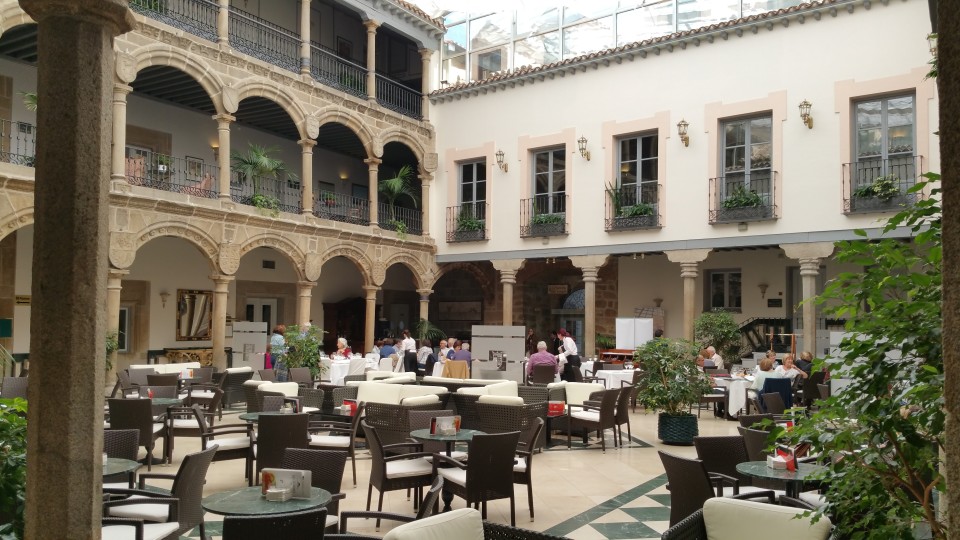 Located next to the Cathedral of San Salvador, the hotel, a 16th-century palace, was restored in 1995 and retains the essence of the original palace. The interior of the rooms retains the old wooden flavor of that era as well as the high ceilings of its time. The hotel does have a suite, but unfortunately, it was occupied at the time so I did not have a chance to see it.