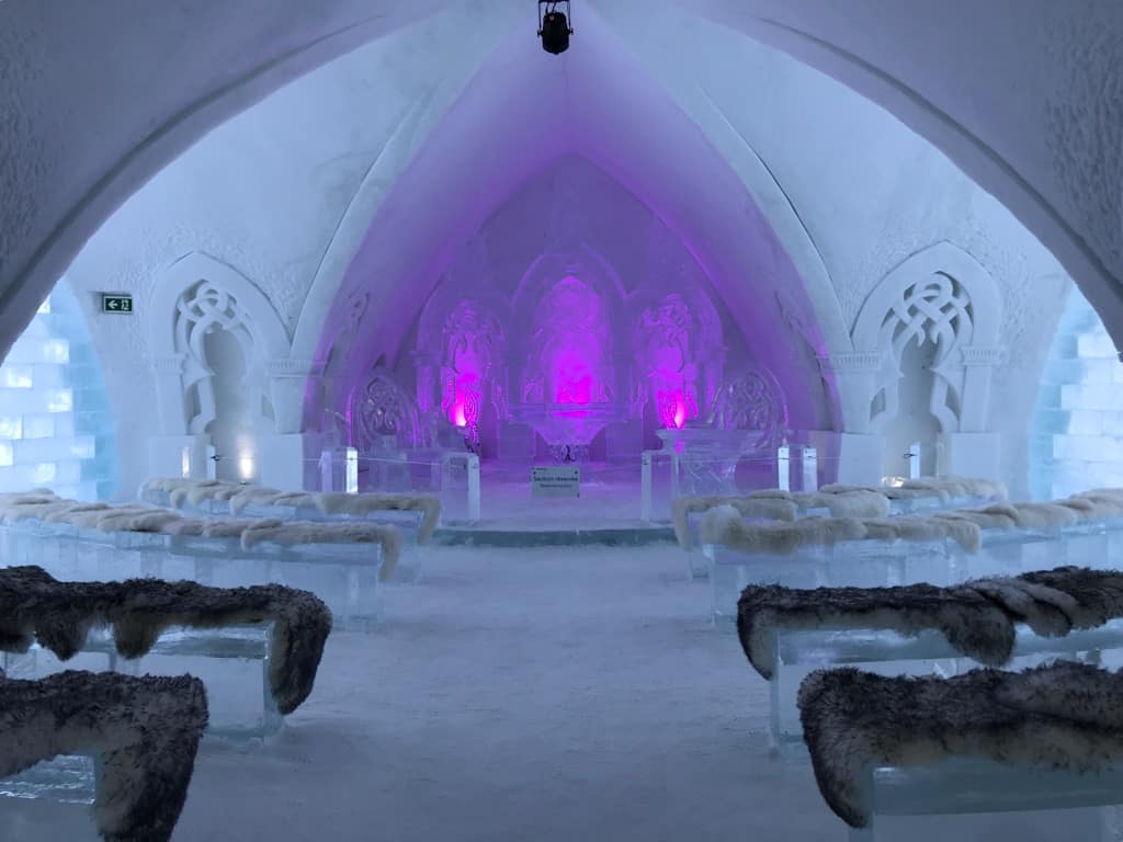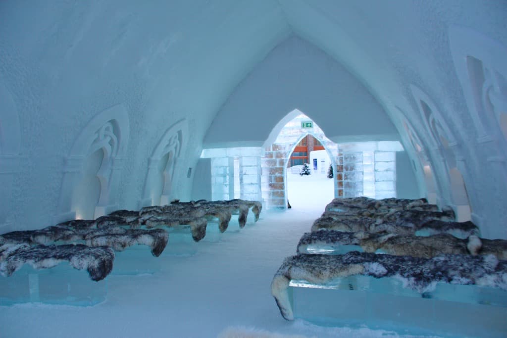 As the entire Hôtel de Glace is made of snow and ice! It is an architectural wonder that is created every winter and destroyed every spring. They keep it open to the public during the day and close it at 9 pm each night to allow the people with reservations to stay for the night! It takes about 2 months to build and is open for about 3 months out of the year! This year’s theme is “a winter’s garden”, as each year they have a theme.