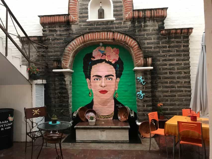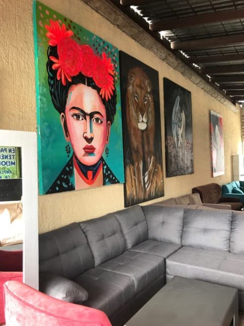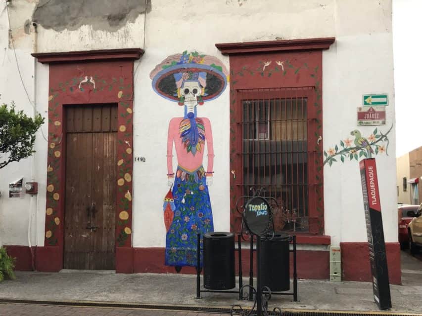 It’s more like what can you NOT buy? They have everything from tequila stores to furniture, knickknacks, souvenir stores, pottery, and art to clothes, shoes, and home furnishings. One thing I really liked about Tlaquepaque is that the atmosphere is very festive and reminds you that you are in Mexico with many statues, umbrella walkways, murals, and fountains. Also, there is an abundance of restaurants and bars. And of course, paintings of Frida Khalo!