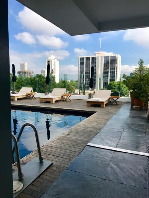 Since I keep mentioning this hotel, I might as well tell you a little bit about it. Honestly, this IS my kind of hotel. Hotel Demetria is an independent hotel, very boutiquey, with an extensive art collection, a rooftop bar and pool, and quite frankly a very cool vibe. In fact, in the back of my mind, I kept thinking it was almost too cool for us. But I do have to tell you that is not the case. It is just that – it has the cool factor! It has a wonderful rooftop area with many sitting places, a rooftop pool with a bar.