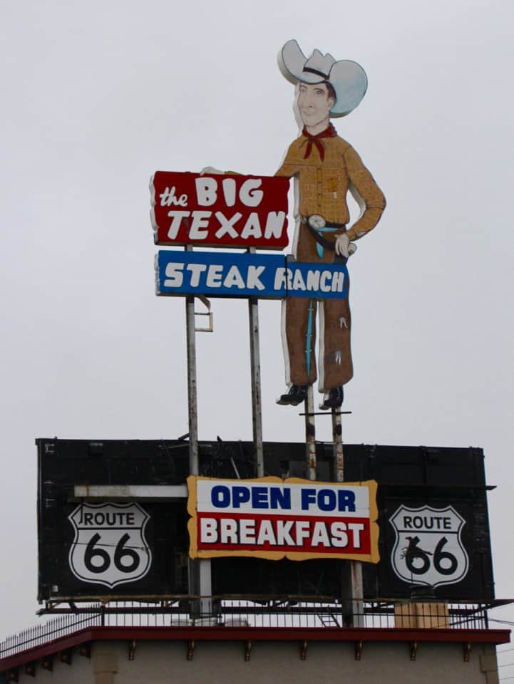 BIG TEXAN: Home of the famous and free 72 oz. steak, as everything is BIGGER in Texas and this place is the epitome of that slogan! Come on over to a steakhouse, motel, Texas-shaped swimming pool, magic, and music shows, casino, ice cream parlor, gift shop conglomerate complete with 10 longhorn Cadillac limos to bring you there. Now home to a future zip line! Where in one pit-stop, you can see it all and enjoy the carnival-like atmosphere of the BIG TEXAN steakhouse!