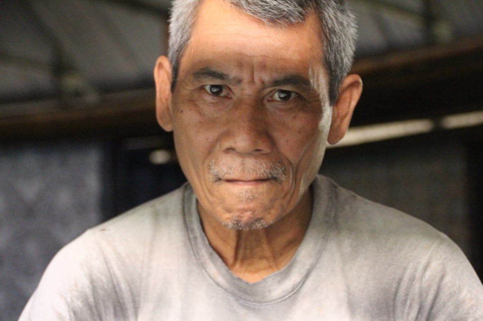 I noticed the wrinkles in his face as he stood mute, lips tightly pressed against each other with the skin on his neck muscles taut. He was a thin man, like the ones I typically see when I travel to Indonesia. He was demonstrating one part of the process of the art form of Batik, in the third world workshop facility. I am dripping in sweat, yet he doesn’t seem to have a drip on him in this moistly-heated country. His eyes are strong and paint the story of his people and their resilience to work in this art form called Batik on the island of Java in Yogyakarta, Indonesia.