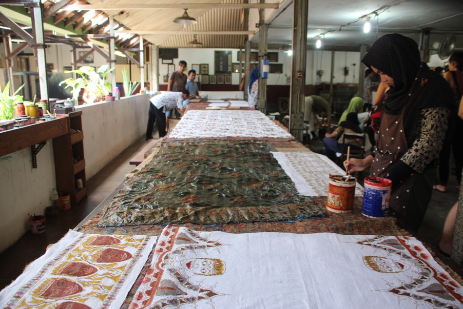 I then walk around the workshop and see varying degrees of different types of Batik, from hand-stamped work to handmade work not quite to the finished product yet.