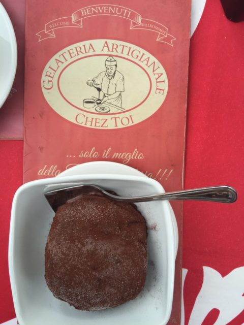 Something I know about myself: I have two stomachs, one for regular food and one for sweets! I insisted I had plenty of room for my very own Tartufo! Even though the other stomach was bursting at the seams. The word “tartufo” means “truffle” in Italian.