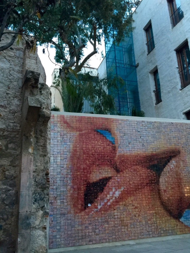 Joan Fontcuberta’s photo mosaic mural known as “El món neix en cada besada.” (in English: The world begins with every kiss).