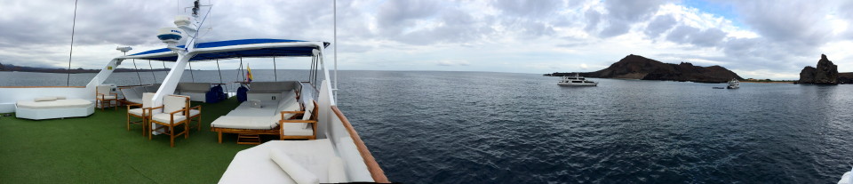 Let me tell you a bit about the yacht I was on in the Galapagos for one week. Ecoventura is one of the official tour companies that can take you on a 7-day trip through the Galapagos Islands. They own 4 yachts: THEORY, Origin, and the Letty. The fourth yacht is their dive boat Galapagos Sky. Each yacht holds up to 20 passengers each. There are a few decks on each yacht.