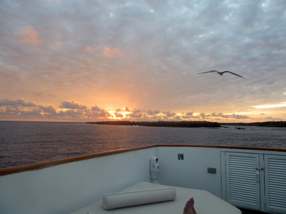 Moist, breezy air flows thru my Michael Kors bathing suit cover-up made of an animal print design, as I squint my eyes looking at the sky on the yacht’s top deck. I am lying here trying to decide what to tell you first about what a wonderful adventure I went on for an entire week with Ecoventura to the Galapagos Islands on the ship Letty. I also took a trip on the Ecoventura yacht Theory, so you can read a complete guide to Galapagos Cruising here.